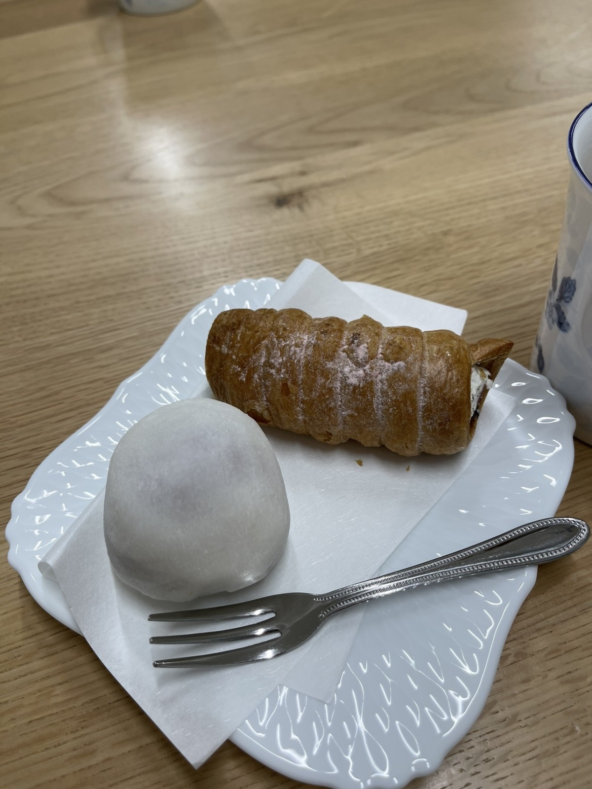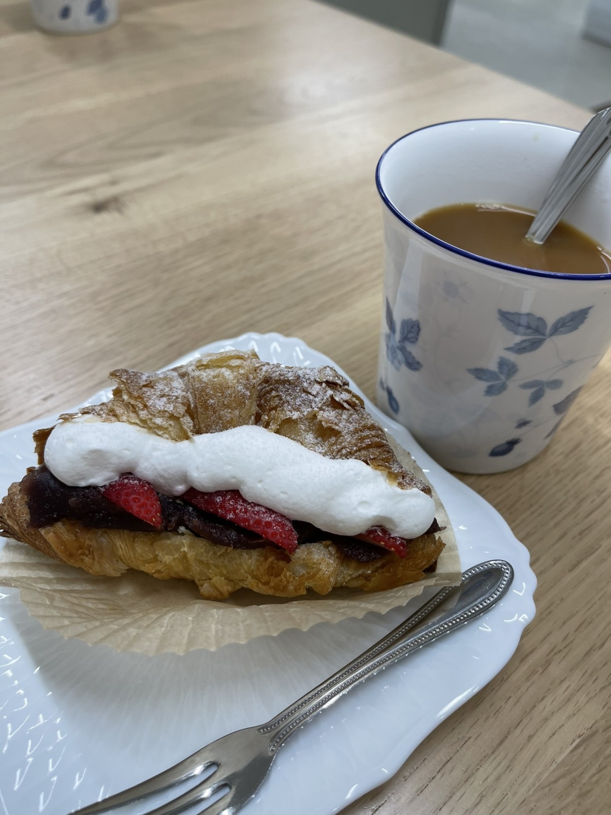 クロワッサンにあんことホイップと苺をサンドしたケーキ