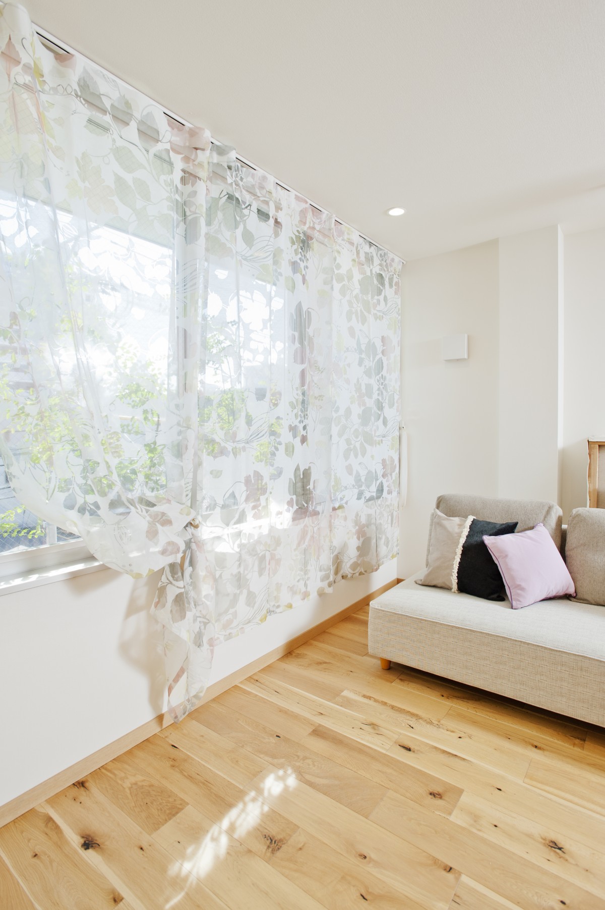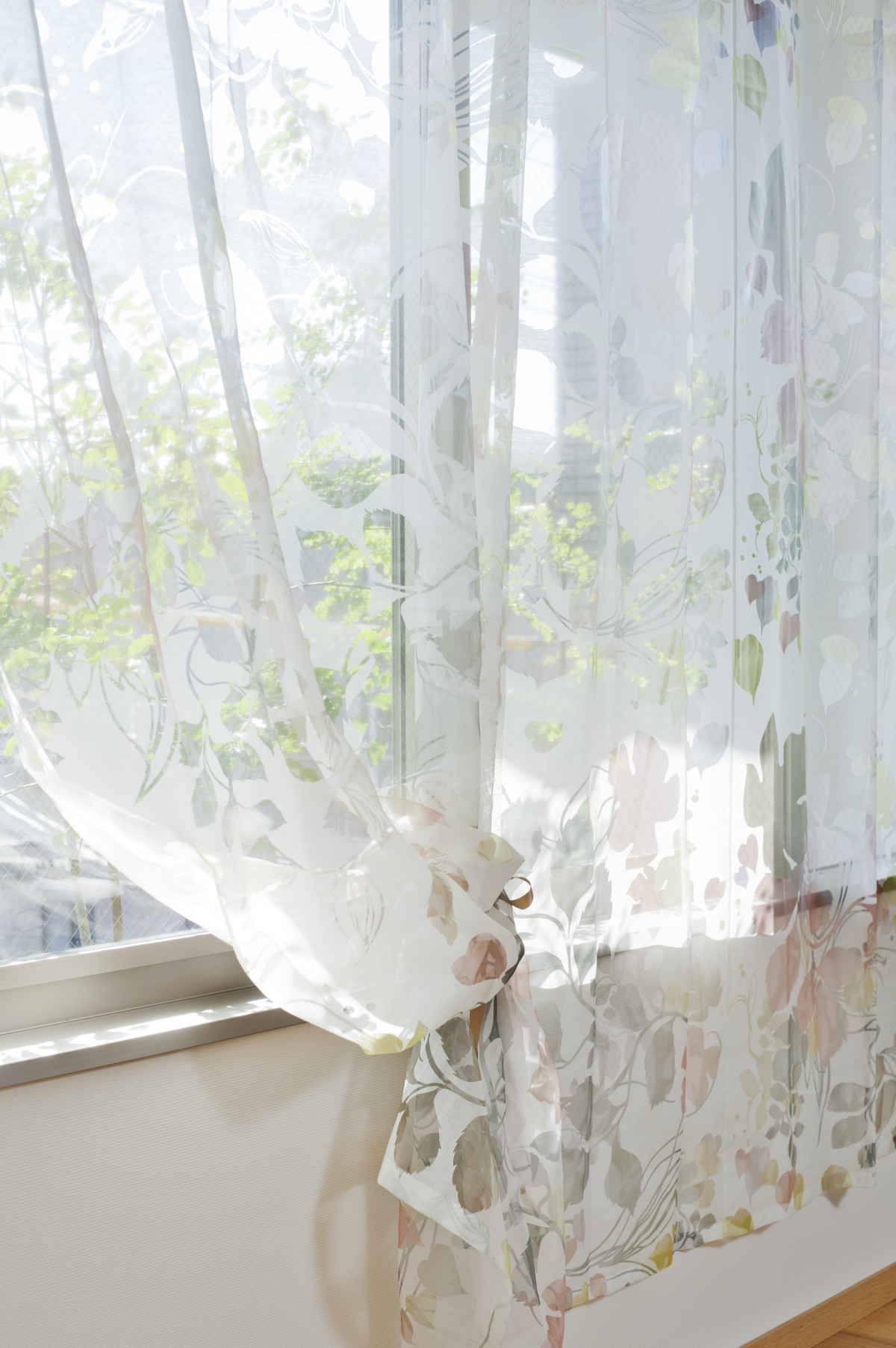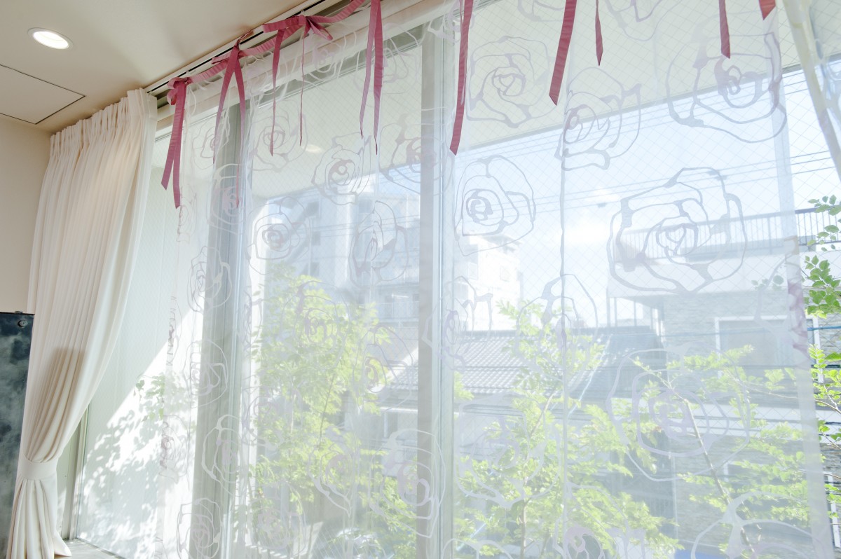 これは撮影者の遊びです。ラインカーテンに差し込む光が美しかったんですよね。
