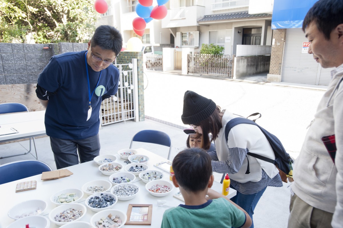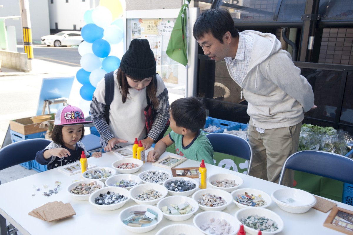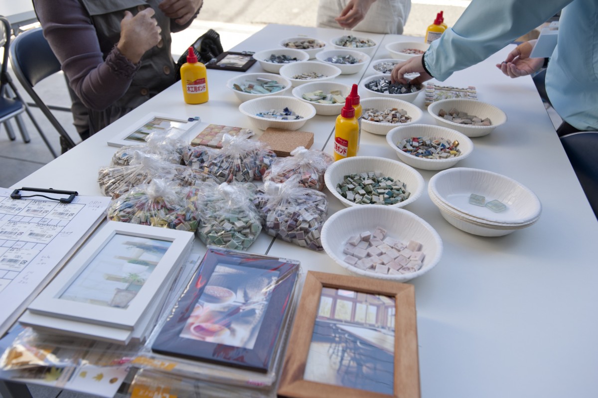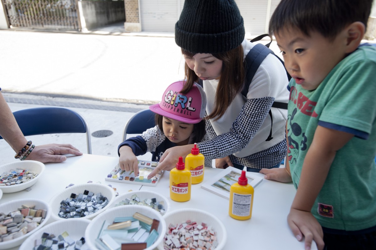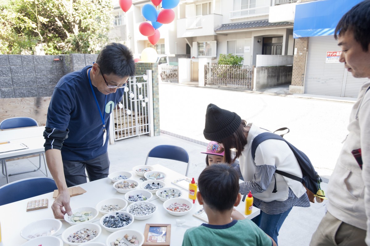 「ユミぽんと仲間たち」による、タイルを使ったワークショップ。