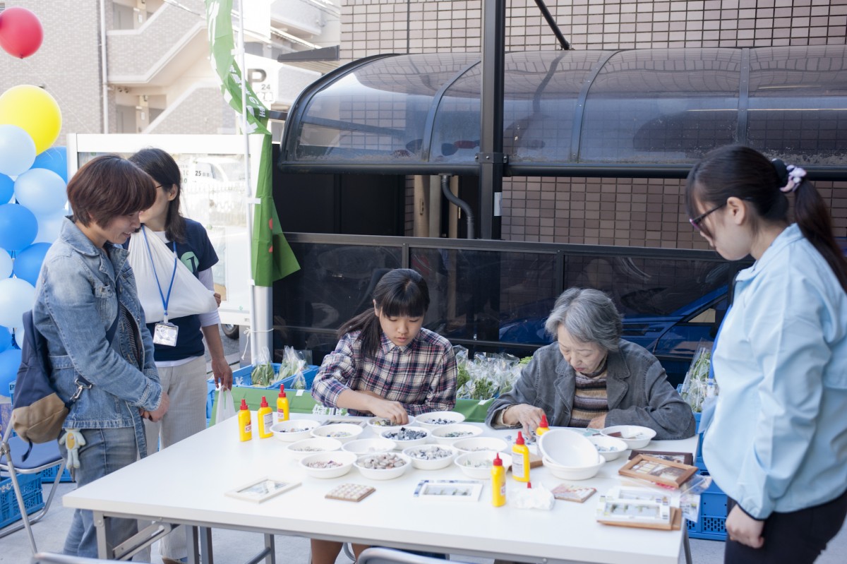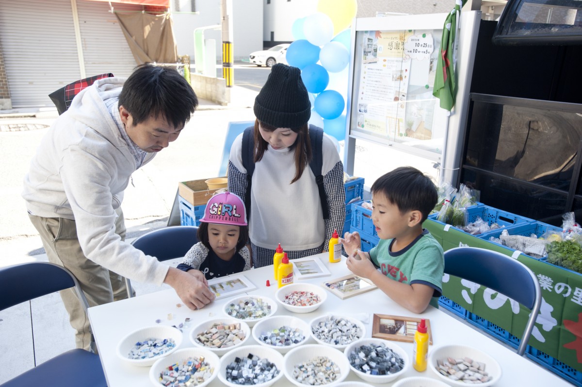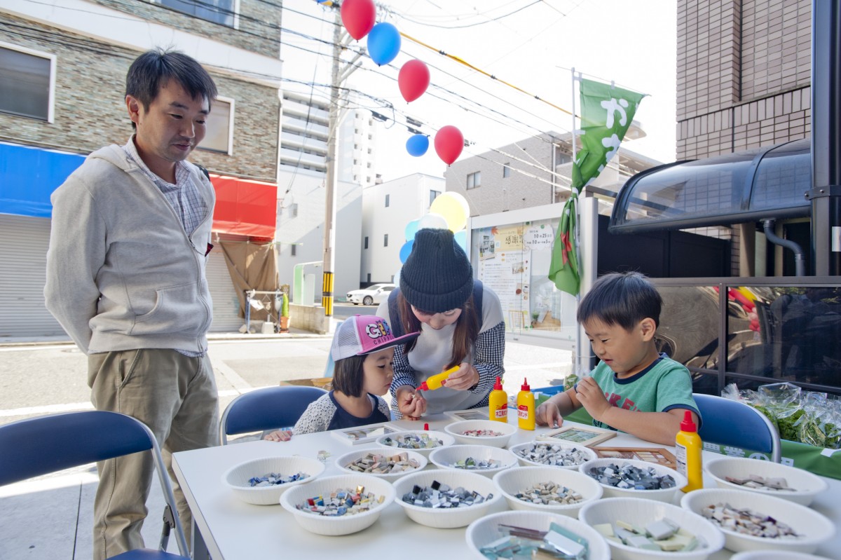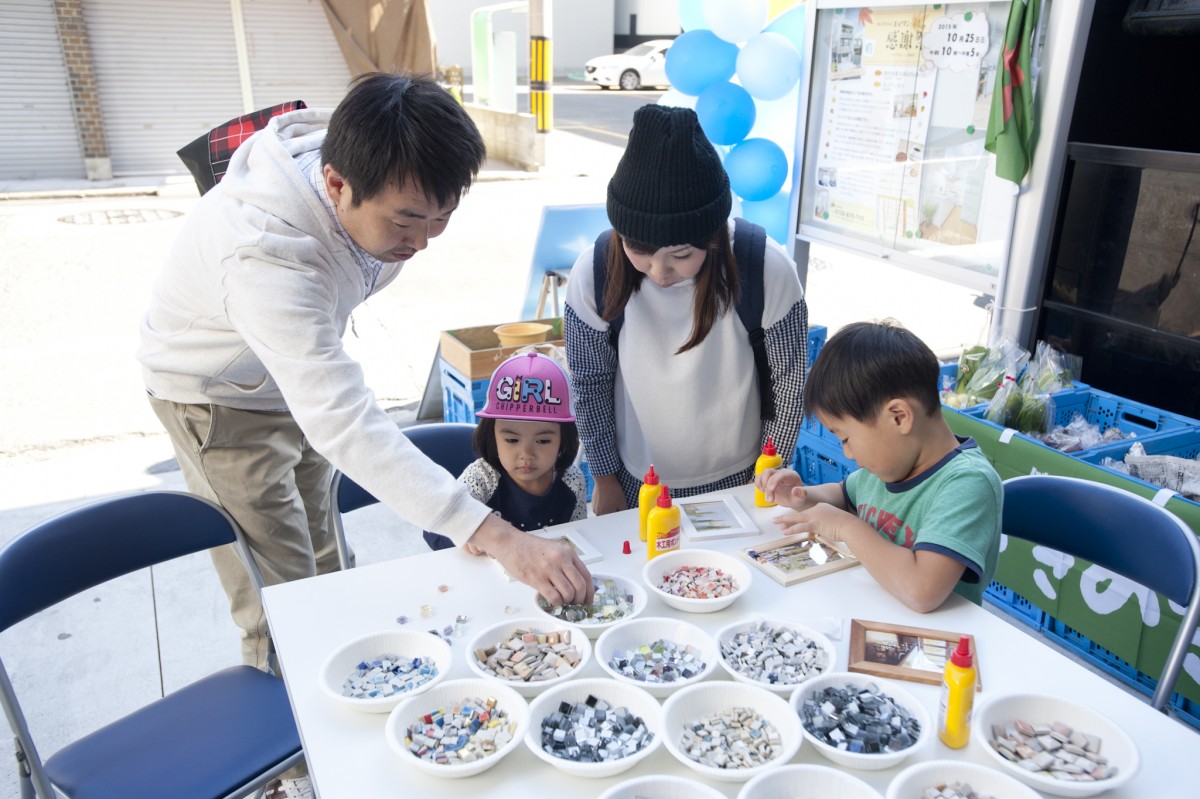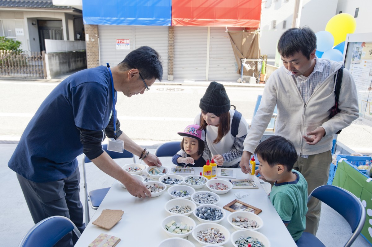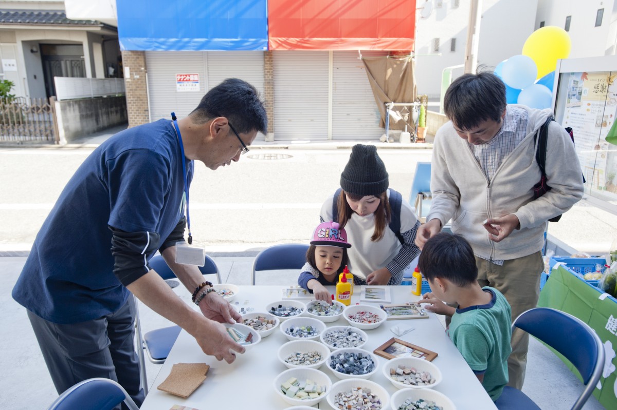 「ユミぽんと仲間たち」による、タイルを使ったワークショップ。