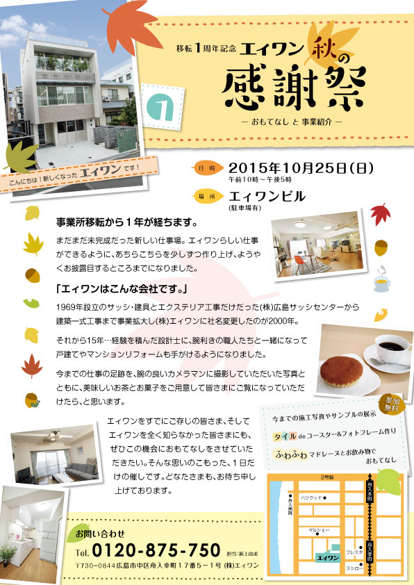 この時の趣旨は、チラシにも書かれていますが 事業所移転から1年という区切りがついたことを記念して