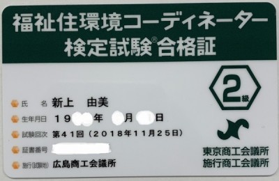 このたび、福祉住環境コーディネーター2級に合格いたしました。