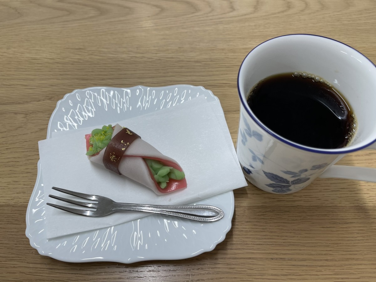 3時のおやつ(3月9日) 3月9日 3時おやつは、多津瀬さんの和菓子。 のし雛(のしびな) 手前 麗か(うららか)、奥 鶯餅 多津瀬さん曰く、【和菓子は暮らしを豊かに彩る心の栄養です】とのことです。 糖分補給だけでなく、心の栄養も補給できました。 新上記 2021年3月10日 9:41 AM カテゴリー: 日々徒然