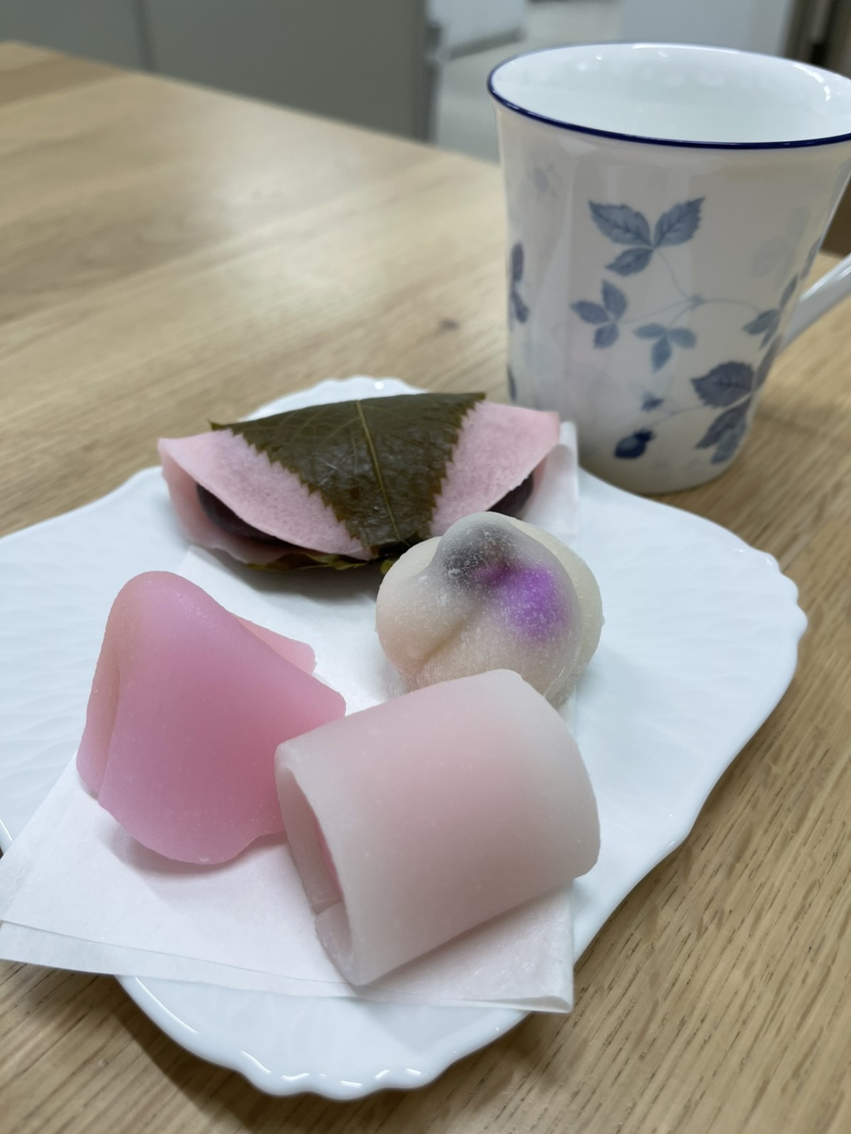 3時のおやつ(3月18日) お彼岸ということで、おはぎをいただきました。 ちょうどよい甘さでおいしかったです。 焼き桜餅と生菓子もいただきました。 たくさんいただいたので、食べきれなかったお菓子はお持ち帰りしました。 職場でも家でもおいしいお菓子が食べれて幸せです😊 新上記 2021年3月18日 4:30 PM カテゴリー: 日々徒然