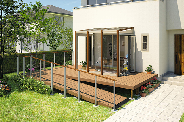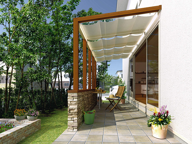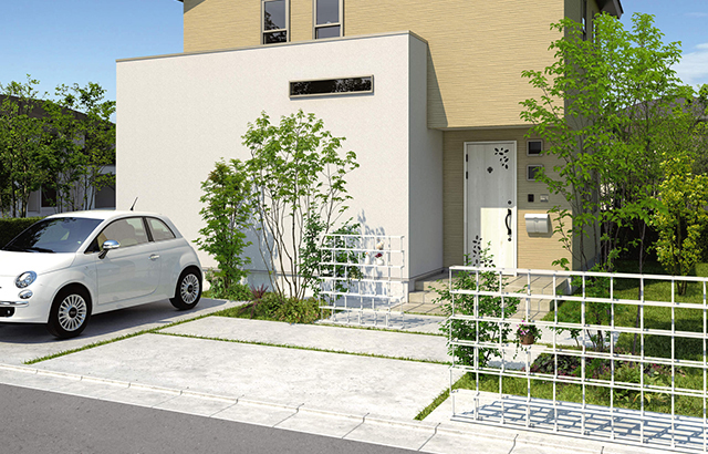 フェンスとコーディネートして外部からの視線を遮ったり、防犯機能を高めることもできます。