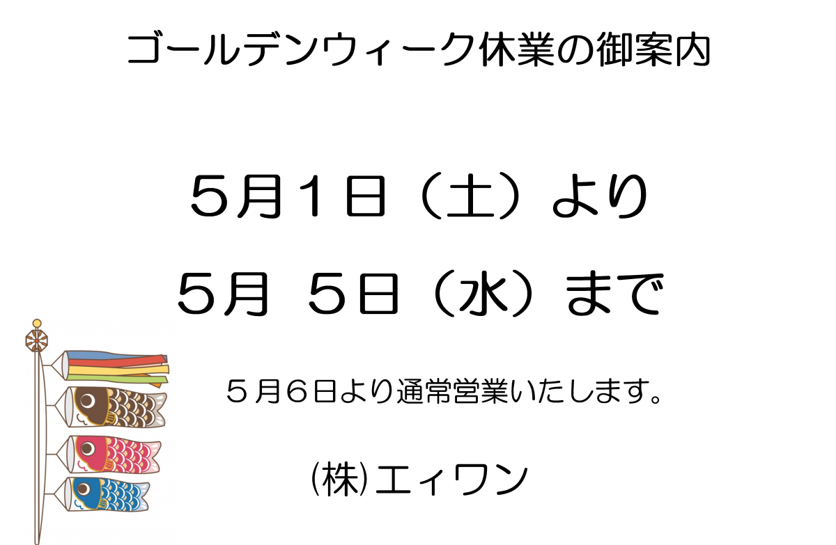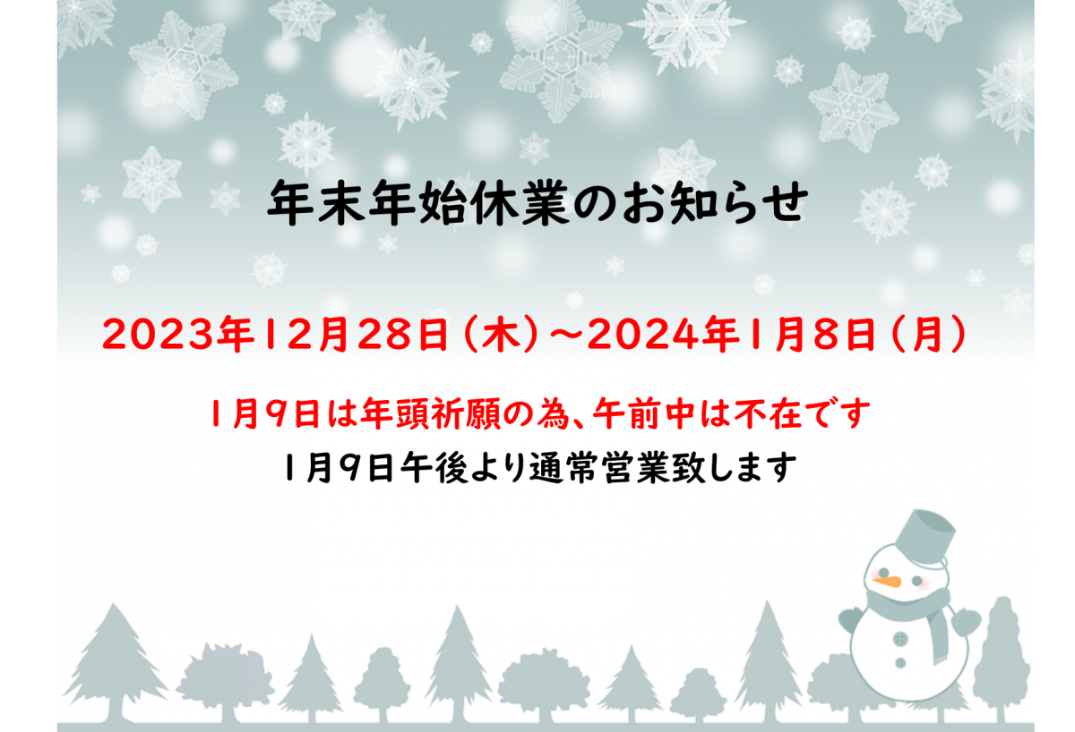 棚卸しに伴う休業のお知らせ
