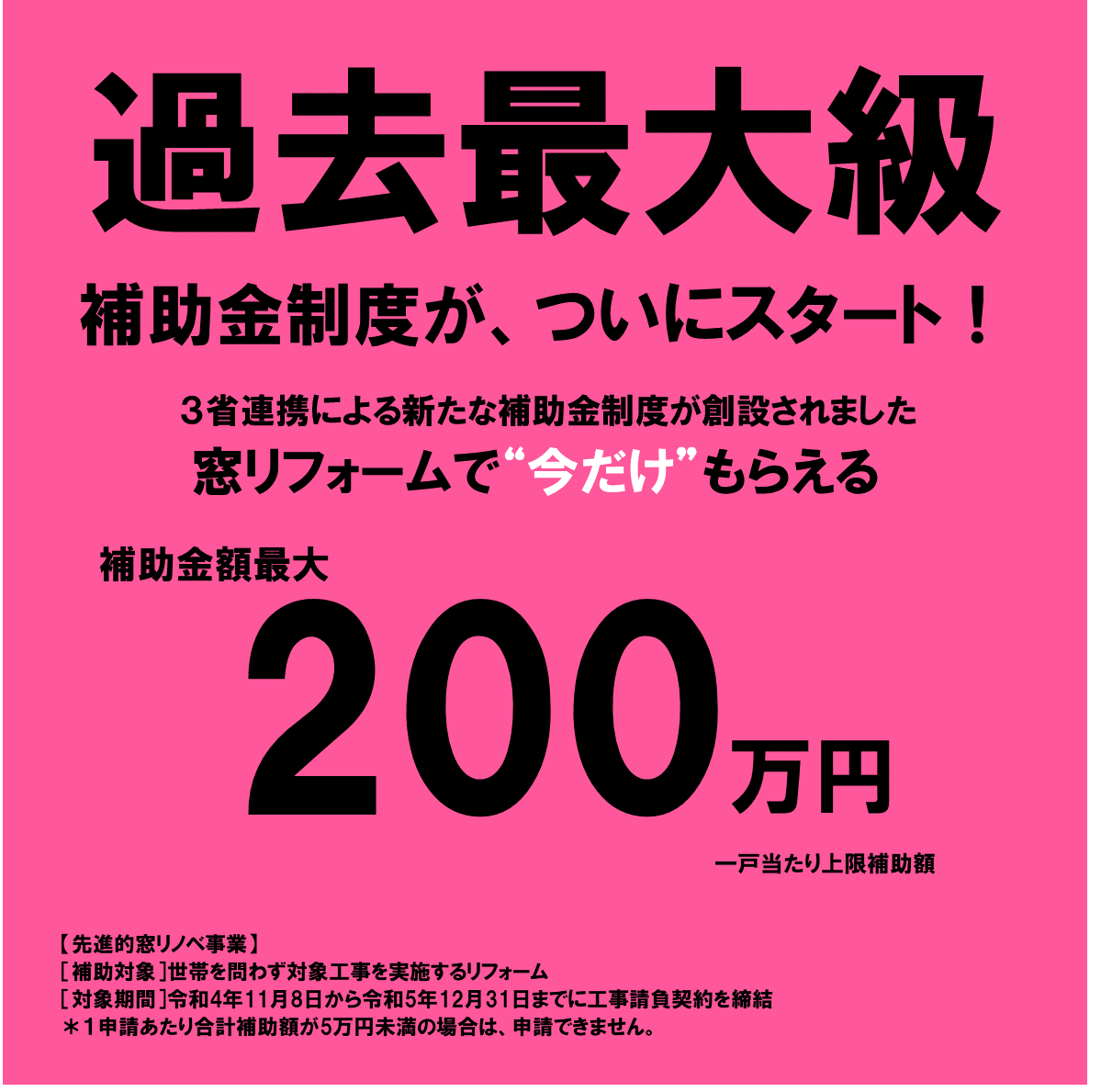 過去の補助金に比べて、補助金額が多く、この機会にぜひ窓リフォームをご検討ください。※1