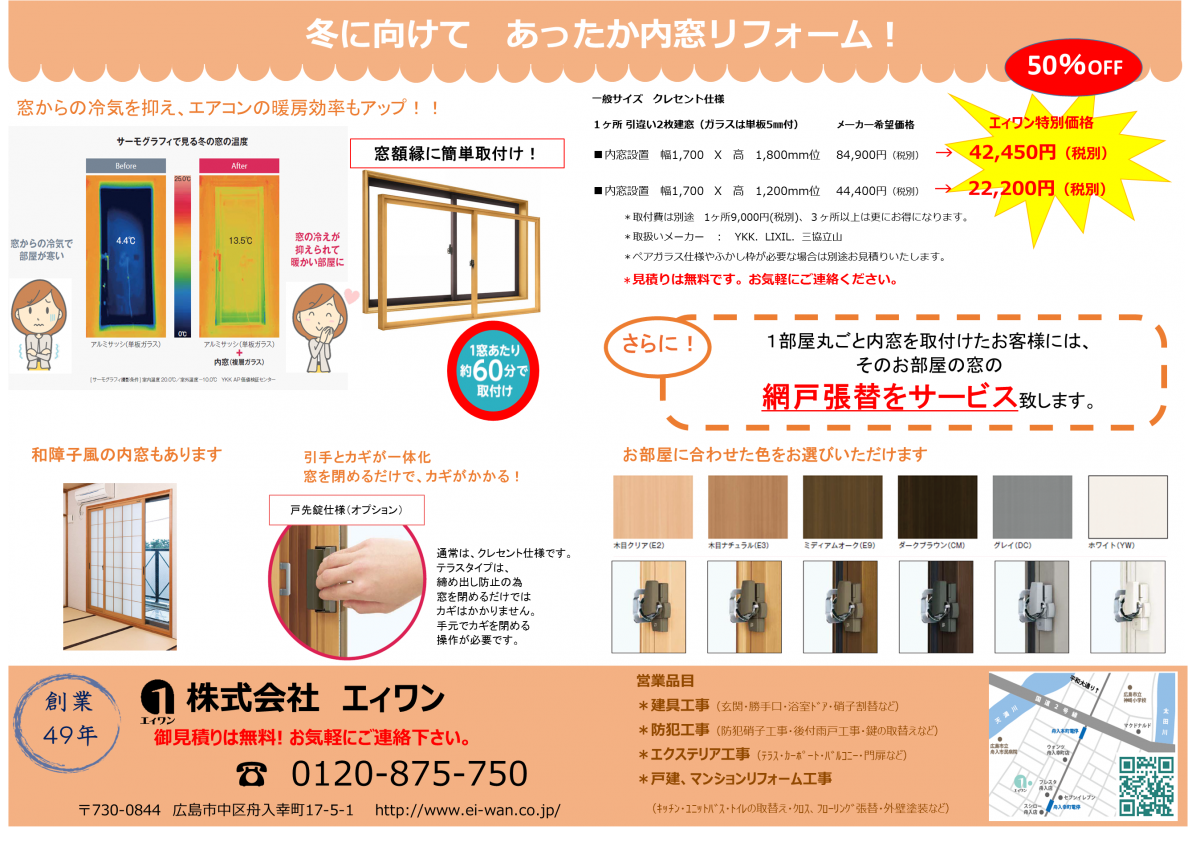 内窓リフォーム エィワン特別価格として