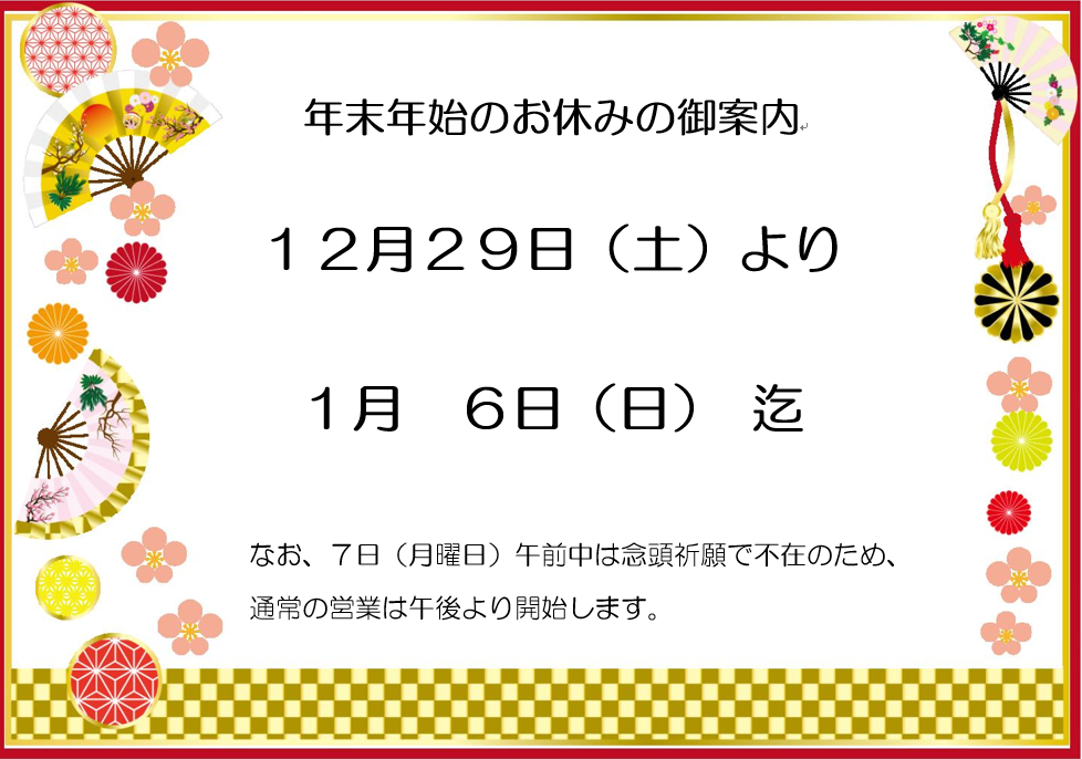 弊社 棚卸し業務の為、誠に勝手ながら 2019年2月1日(金) 、2月2日(土)の両日を