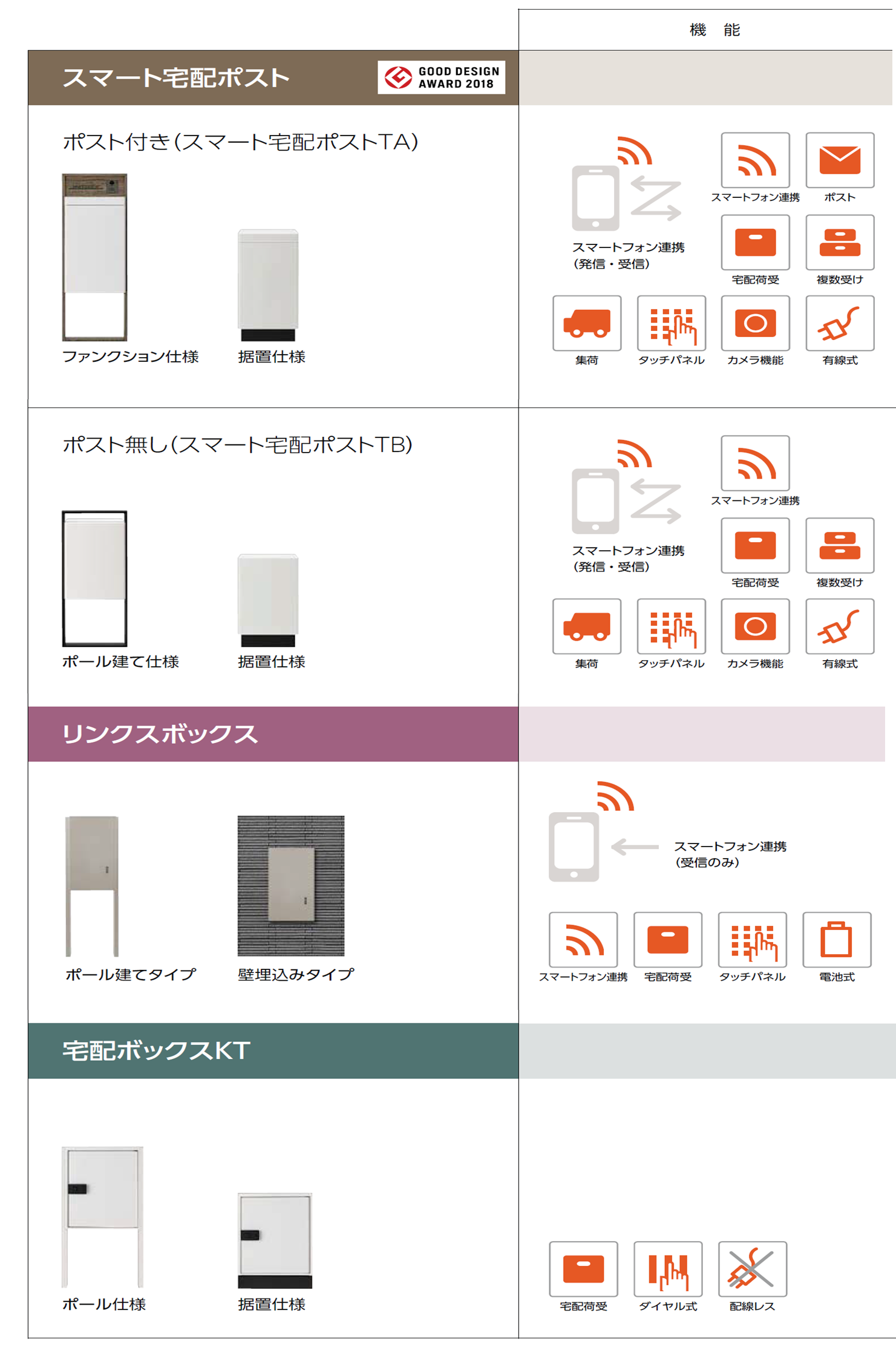 ポスト無しの宅配ボックスや配線工事不要のタイプもあります。
