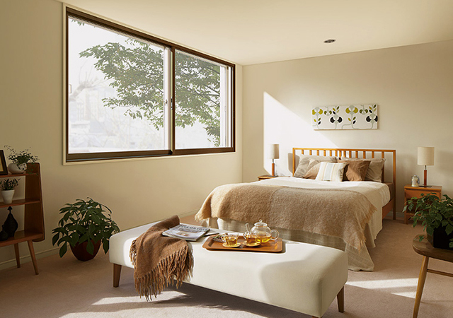 大きな特徴は優れた断熱効果。たとえば冬、外の寒さが窓から伝わりにくいので窓辺のひんやり感もなく、お部屋の隅々まで快適に過ごせます。さらに夏の間は冷房している室内の涼しさをしっかり保ちます。